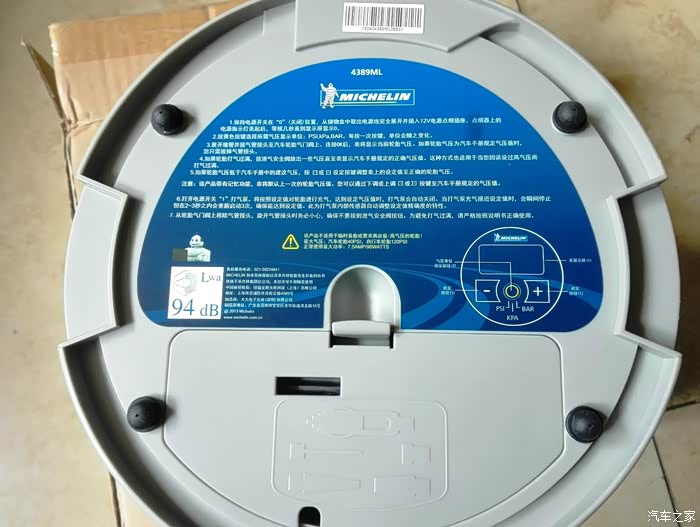 机器背后的简易使用说明。可是我拿到的这个气泵没有断电记忆功能,每次使用都要重新设置单位和胎压上限。这个很不爽,难道我拿到的是有软件BUG的产品?