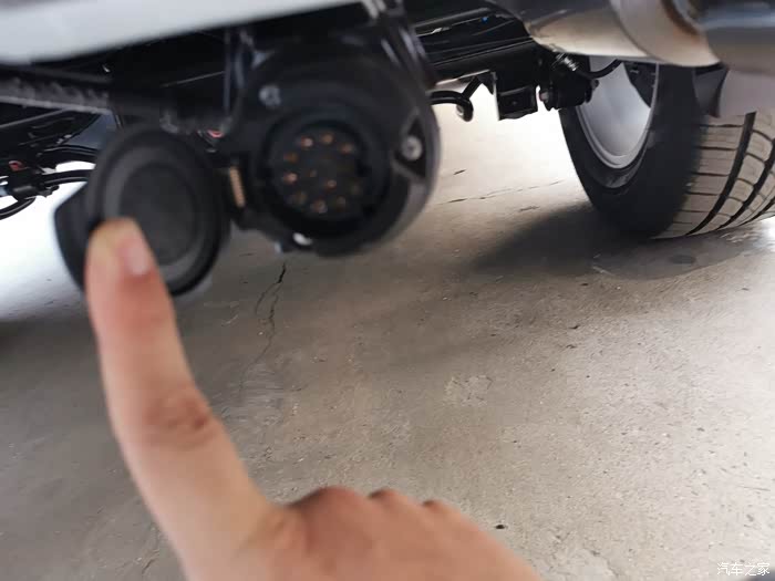 牌照架有了明显的上移,里面这个位置预留的绞盘电源口,便于后期有安装绞盘的车友。