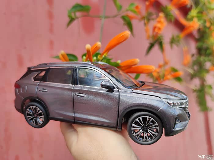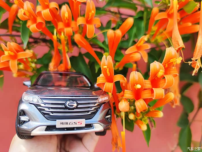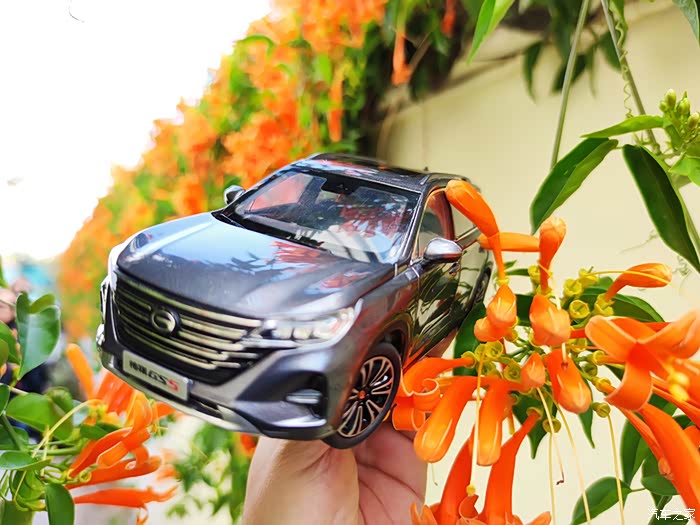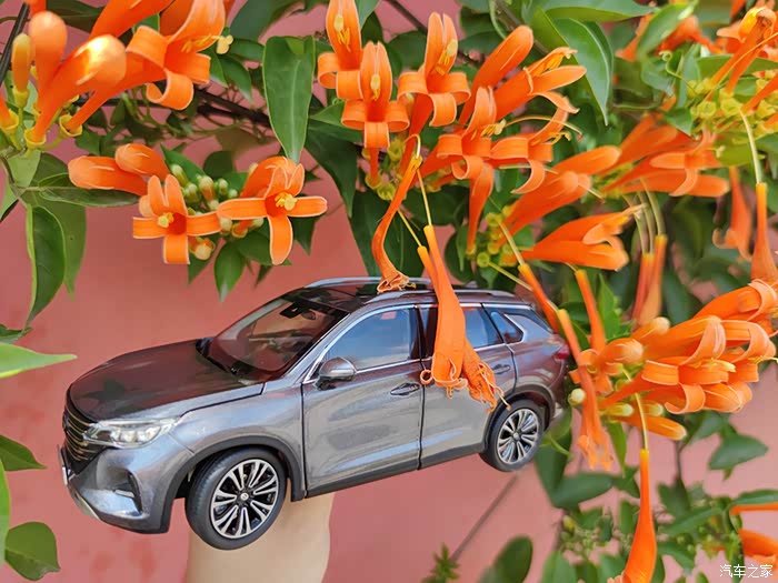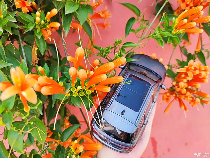 今天带这小车模来我们这里的网红打卡点拍照,才到地点就看到好多人在这边拍照,不愧为新晋网红打卡点,哈哈哈。看到路边的炮仗花,心情大好,秋天的自然,还可以处处透露这样的惊喜,看这手中的车模,路边的红花绿叶,看看车后的蓝天白云,拿起相机,真想把每一个镜头的对焦点都打在我的车身上,一辆精致的中型SUV ,在蓝天白云和天空下,在郊外的路边,离开了城市的喧嚣,只有这郊外才有原野和芬芳,有舒适的阳光,有精致的美景,有自己喜欢的车子,这些就都构成了一幅精美的画面。