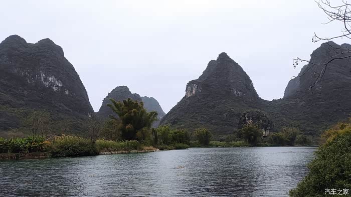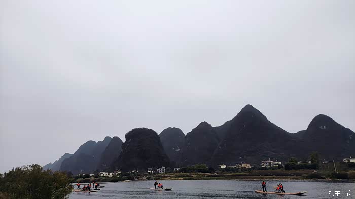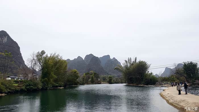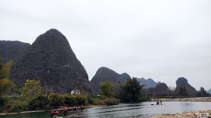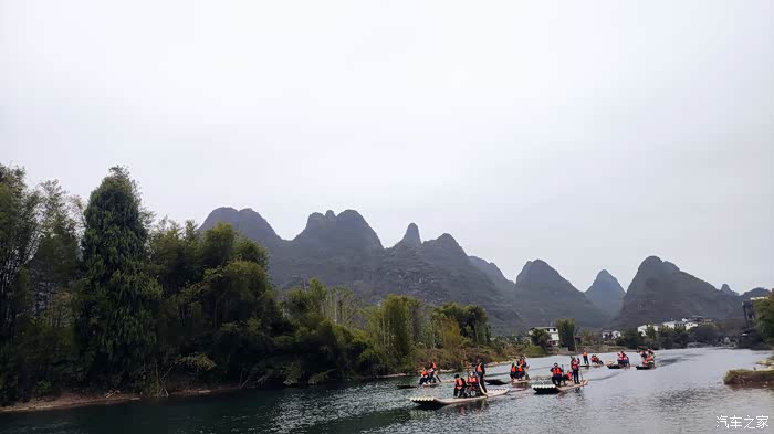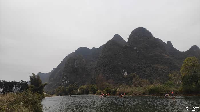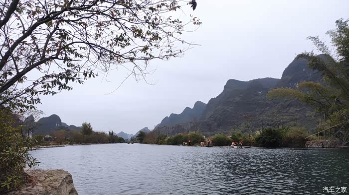 按照网上通用的阳朔玩法是自驾到码头坐竹筏漂流,再坐10元的接驳车返回码头取车,再租小电动车游览十里画廊。而我的游法比较特殊,我自驾去码头准备漂流,走之前跟酒店老板咨询各地的收费情况,老板说今天寒流来了,漂流和租小电动都会非常冷,正好冬天十里画廊里可以开车进入了,你就把钱省了,直接开车,喜欢哪里就停下拍拍照,好好滴。原来还可以这样玩?