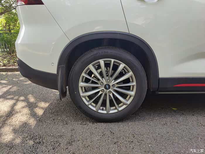外观细节来几张,我觉得铝合金轮毂的设计比较普通,不过好在轮胎抓地力强劲,所以也无所谓了。