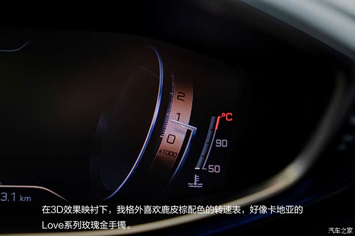 仪表共有两种主题颜色可供选择,一种是星海蓝,一种是鹿皮棕,得益于强大的显示芯片的支持,还能看到转速表的3D光影效果。