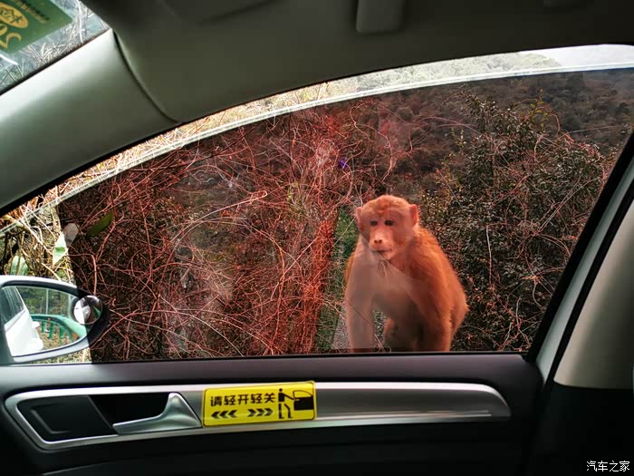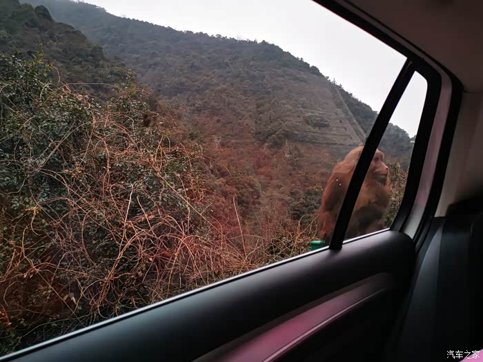 山里有不少猴子,后边有辆车的人下车了,我胆小再加上前后有两只猴儿看着,我没敢下车就,把桔子都喂猴儿了