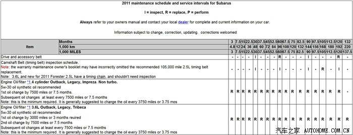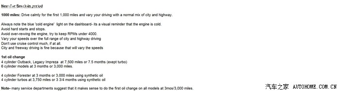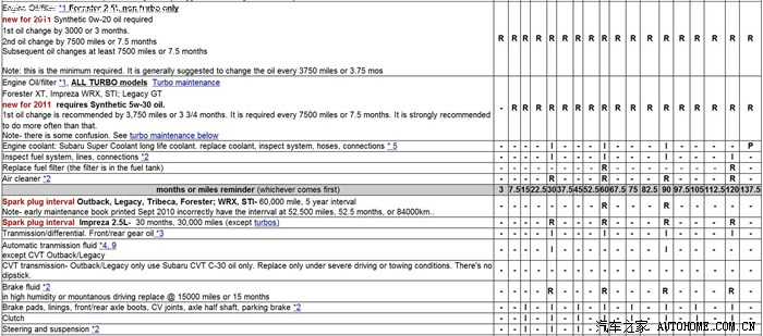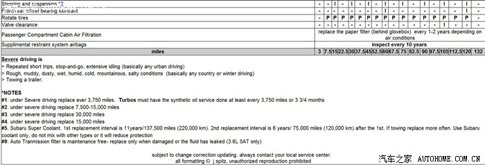 接下来,再来看看斯巴鲁美国的保养要求:(原文地址:http://www.cars101.com/subaru/maintenance2.html)