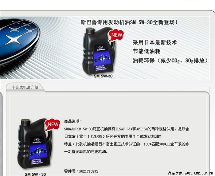 为了更好地说明问题,现将斯巴鲁在华提供的原厂机油展示如下: