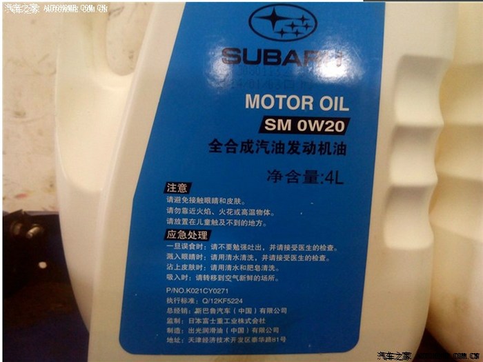 首先,是斯巴鲁自然吸气发动机在美国使用的原厂0W20全合成机油~