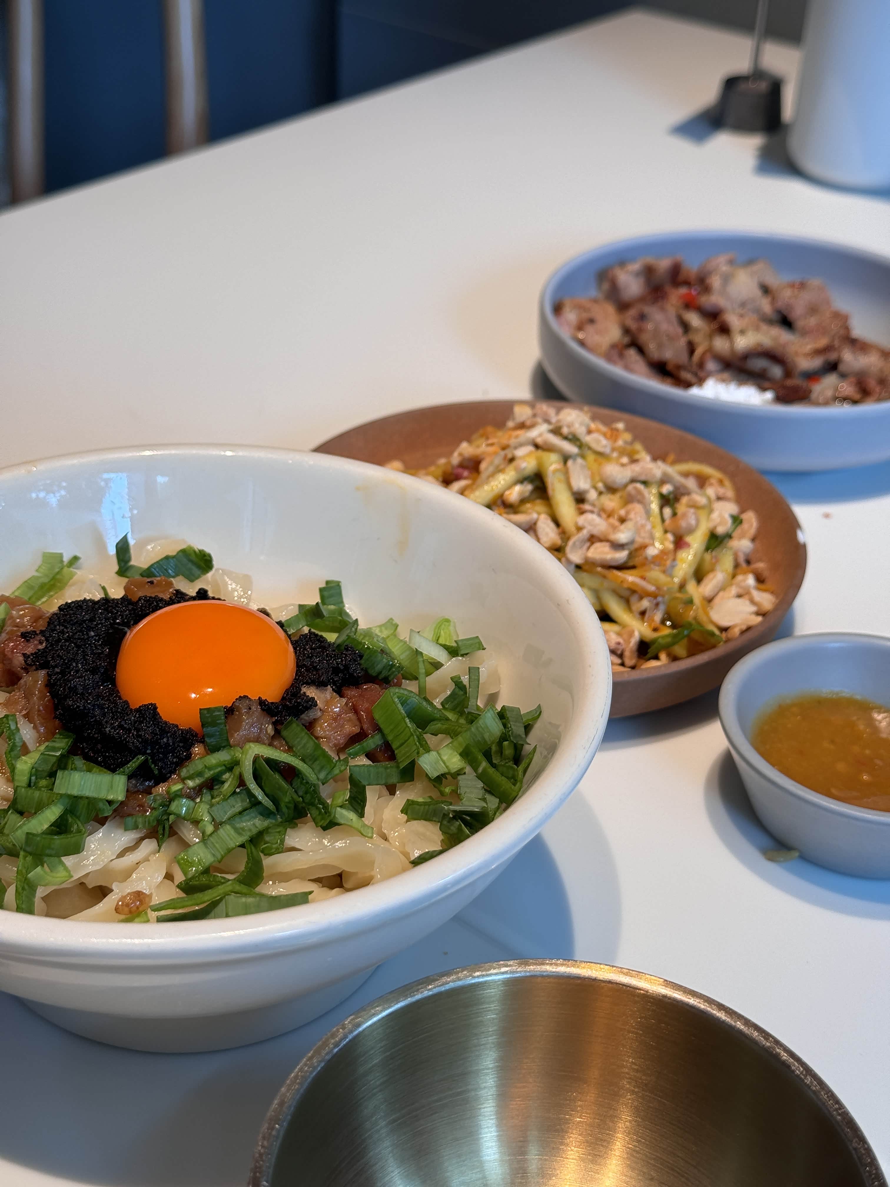 第二天,就出发去吃朋友推荐的静安嘉里中心的《胡麻》,也是排队王,不过是真的好吃好吃。排队等位的时候发现,隔壁有家蓝瓶子咖啡,尝鲜一下,也就还行,价格有点贵了。