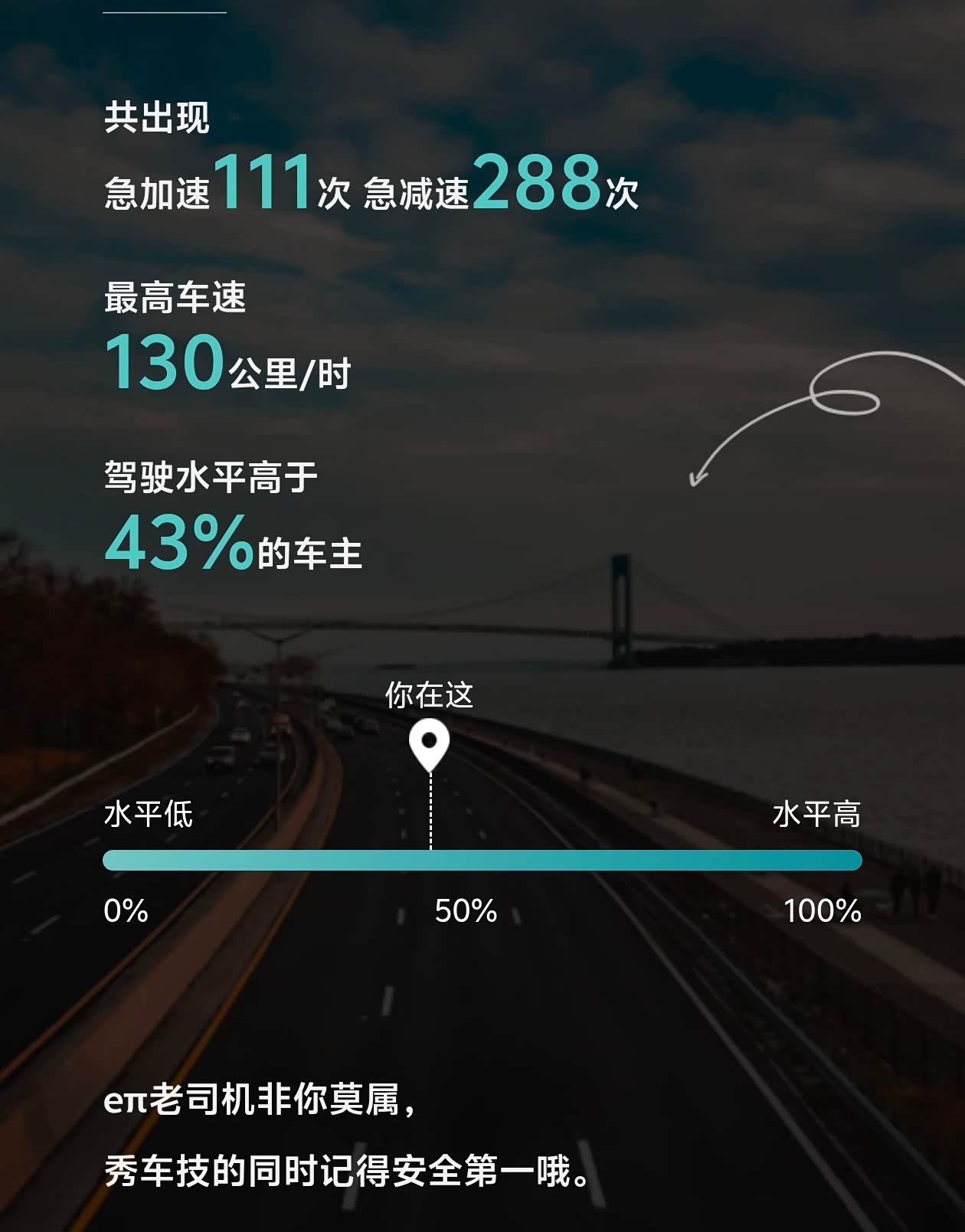 驾驶行为也是车机系统会记录的一项内容,25年我的008最高车速只有130公里