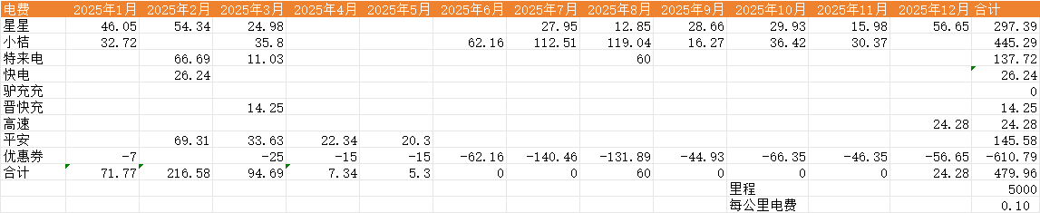 根据车机的统计,2025年,一共用电966度,但这个数据是通过车机电脑统计的,总用电量只统计了行车用电,停车用电量并不做统计,像用空调,车内电器等都不会记录,根据我自己记的充电花费,2025年充电一共花了1090元,我充电的平均价格也就是0.8元左右,实际上用电应该在1300度左右,25年车辆行驶的时长有380多个小时,算下来,在车上呆一个小时,差不多要消耗一度电。