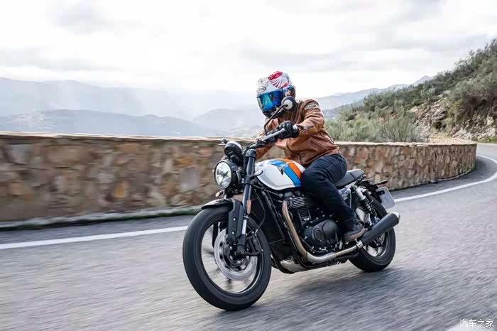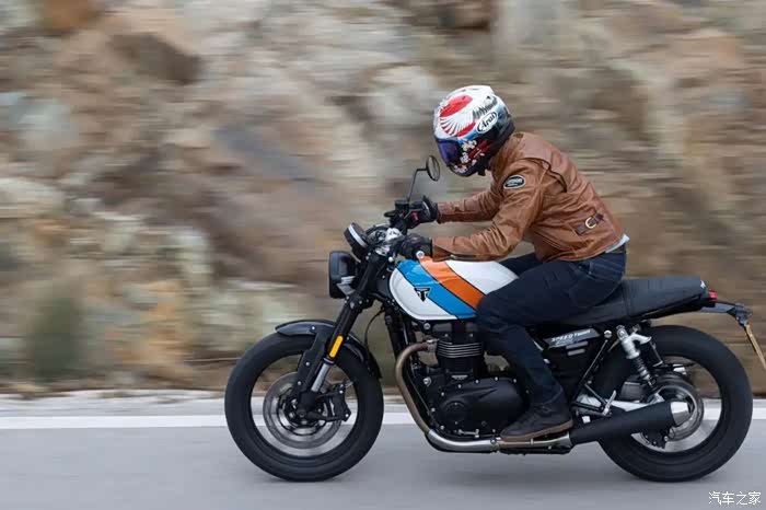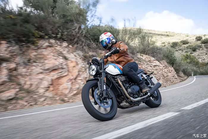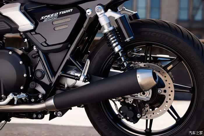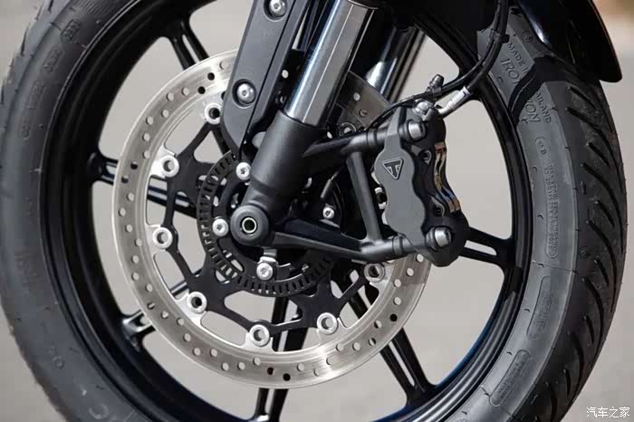 底盘方面新款依旧搭载前后Marzocchi减震,前减震为43mm倒立式结构,后减震为双气囊后减且支持预载调节功能;刹车部分,前刹车为凯旋定制的Brembo对向四活塞卡钳配320mm单碟盘,后刹车为Nissin双活塞卡钳配255mm单碟盘,标配双通道ABS系统。