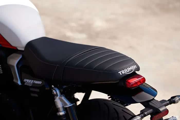 外观上新款Speed Twin 900的变化并不大,依旧延续了凯旋Speed Twin家族那经典的Modern Classics英伦复古设计。外观上最大的不同在于新款推出了三款全新的配色,分别为黑金、灰红、白色。其中白色特别漂亮,油箱上还有蓝色与橘色的色条搭配。