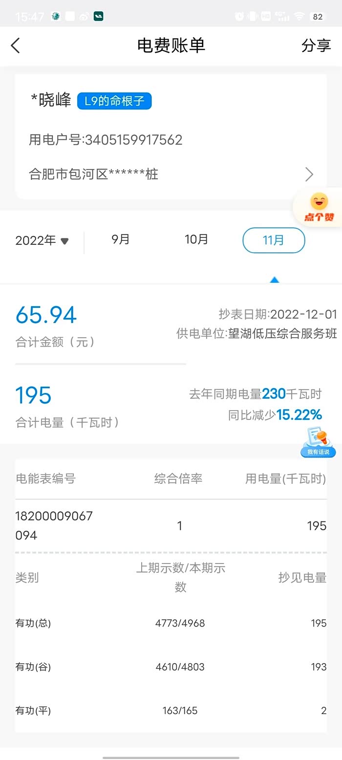 图3-5是家充桩9-11月账单,费用185.21元。
