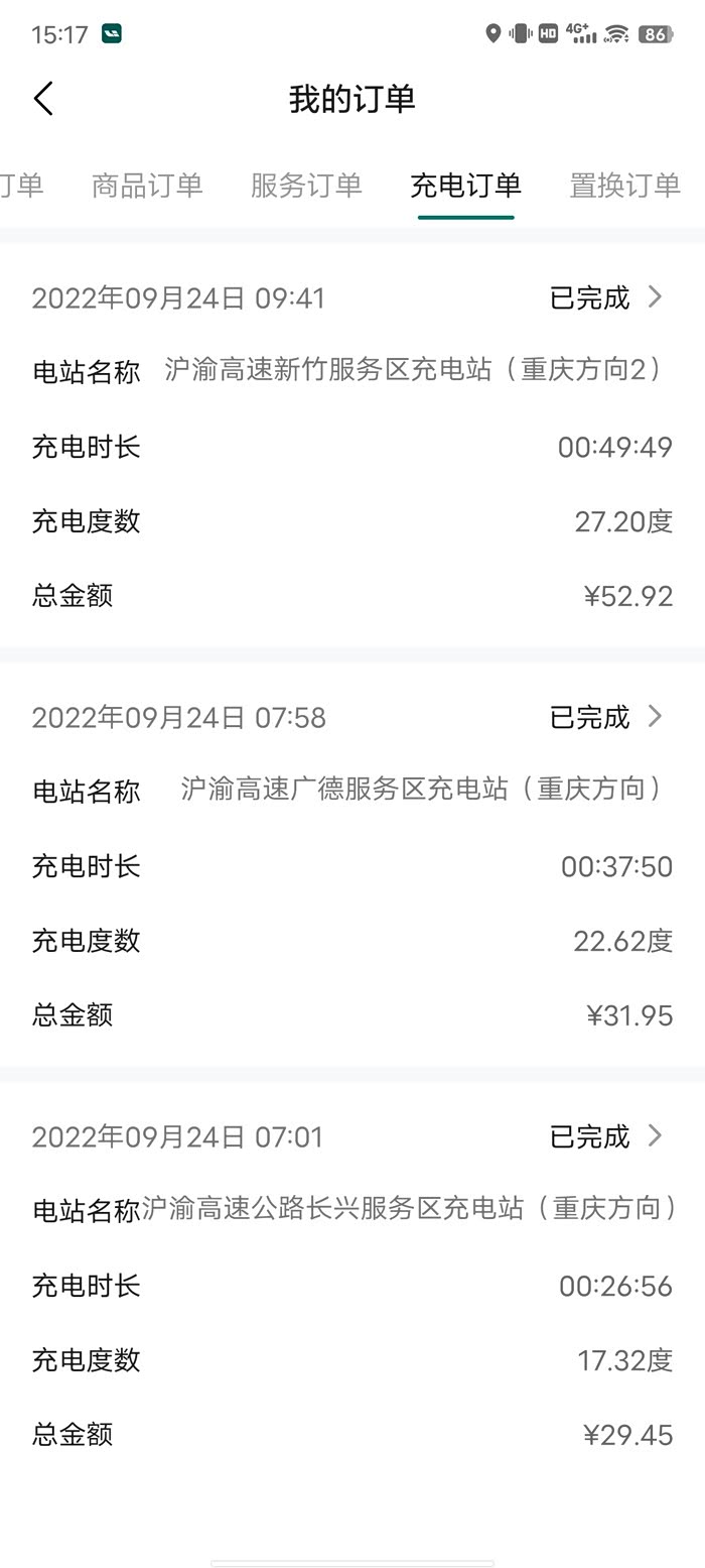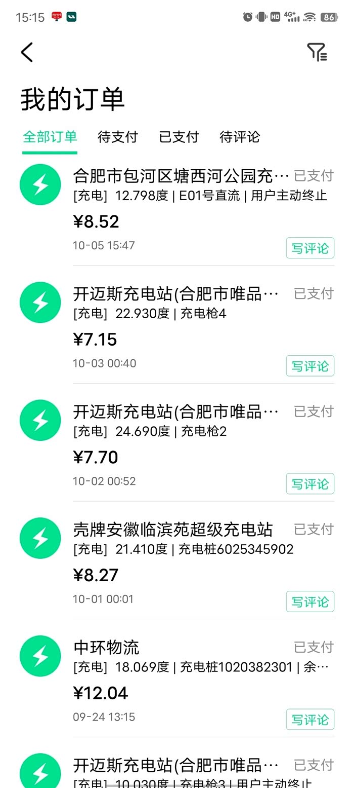 9.22日提车到现在基本都是纯电模式,只有从杭州提车回来的时候用了点油,带大家看一下我的充电账单,一起来算一下用车的开销。