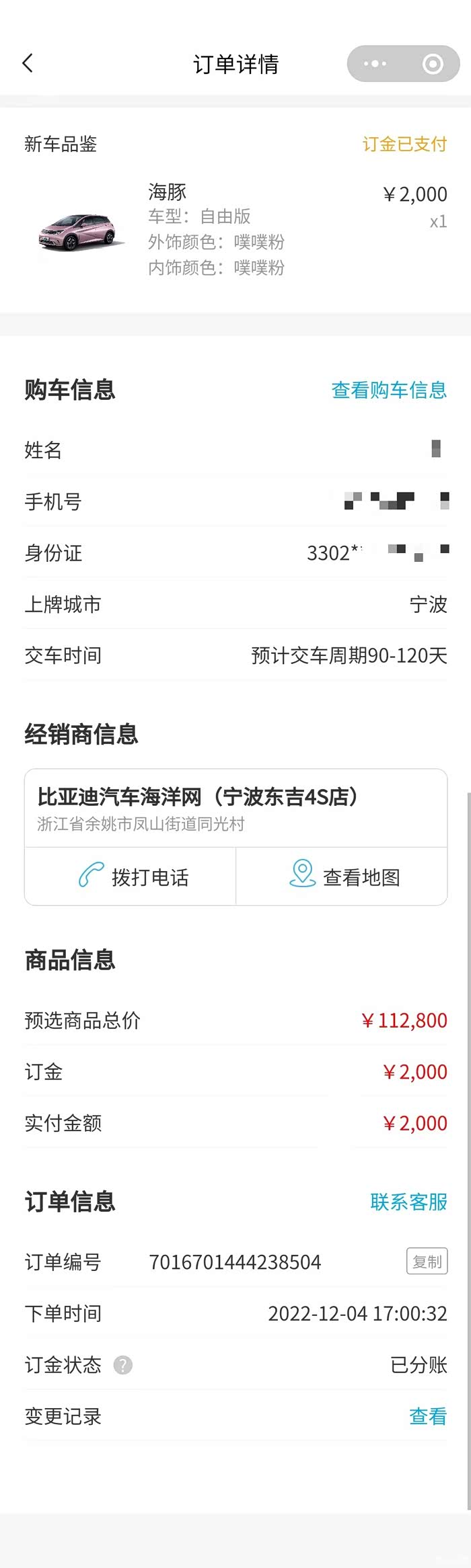 本人于2022年12月4日定了比亚迪海豚自由版,价格11.28万,等车时间3-4个月(比亚迪对外宣称2023年1月1日前交定金的不受调价影响),今天12.28日上午比亚迪海豚官方调价自由版11.68万,看了一下其他车型都是显示补贴后售价,海豚未显示补贴价,也就是说2023.1.1日还没到,补贴价格已经没有了。问销售问客服均告知不确定这个价格是否含补贴。