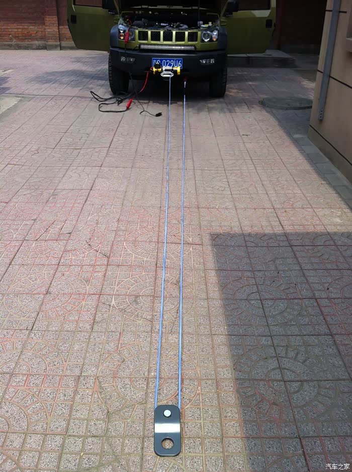 28米线缆,加拖车绳,拉50米外的车辆,很轻松,原车挂钩可以当作锚点来用