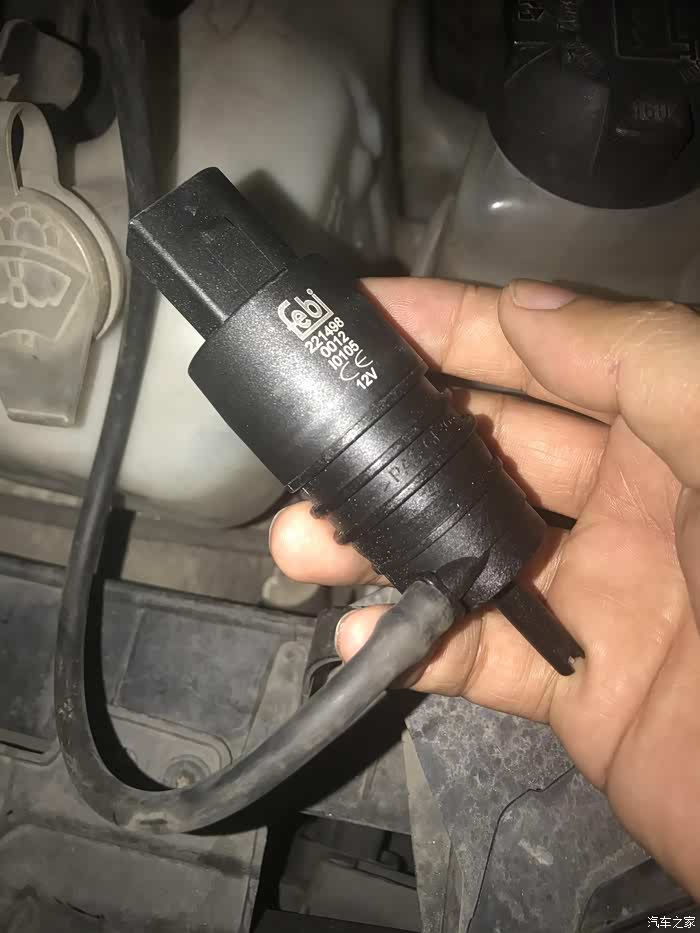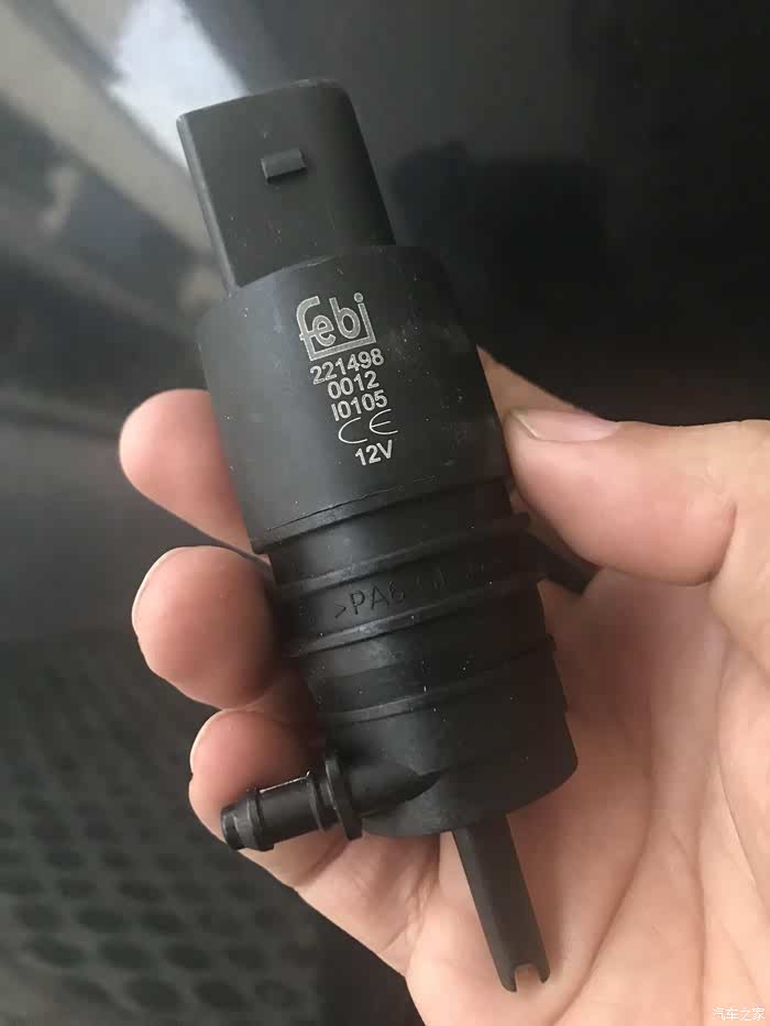 昨天中午下班,看到前檔很多灰塵,雨刷刷一下,發現不噴水了,查看水箱是正常的,拆下檢查連接器,量測電壓11.5V有輸出,判定為噴水泵掛了,再上EPC/WIS系統查詢維修流程,稍晚就馬上下單配件的,但是發現一點,按照原廠的指示是要拆掉前CBS前臉後才能更換噴水泵的,最後看到敞篷版噴水泵跟硬頂版本不同,就試下調整角度,一下子就拿出來了,也省了很多時間的.