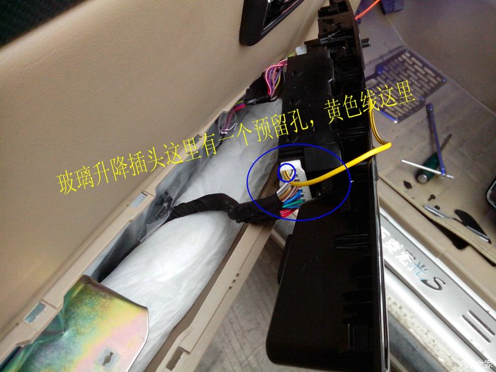 另外一头线就是插进这个预留口,原来是空的,现在我已经把黄色线插进去了