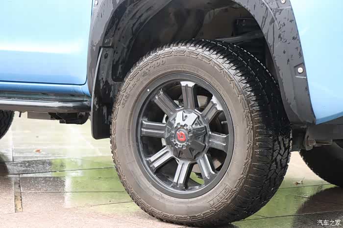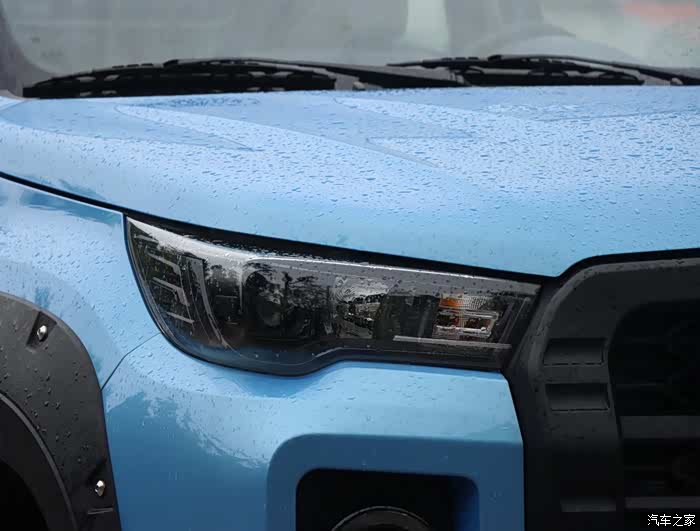 它外观设计是我个人觉得在皮卡车里看得最顺眼的,中网的形状和大灯相结合看起来很阔气,还有其他精致部位:雾灯的日行灯,驾驶起来之后,等亮的是一个圆圈型,很有辨识度,轮眉采用螺丝外露的固定方式,侧踏和后备箱的防滚架都用了裸露的钢管设计,野性气息十足,它的外观设计与其他车型不雷同,在皮卡车中算是很特别的,让人一眼就能认出来,开在车群里我就是最靓的仔。