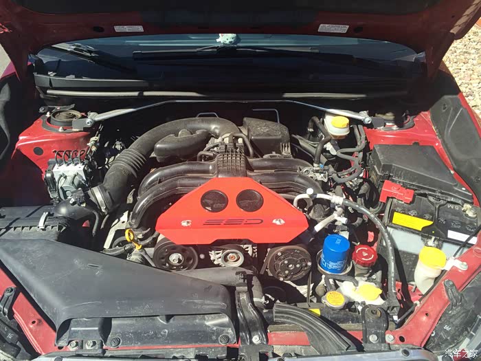 肚子来一张,发动机散热板是为xv翼豹车型专门设计的,SSD performance,进气只改了KN高过滤风格,没改蘑菇头。机油盖是cusco的,远处是前顶吧,位置刚刚好