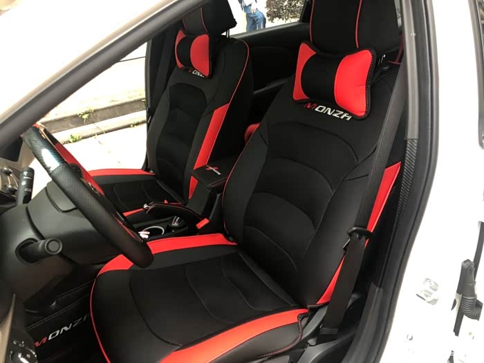 坐垫买了一个黑红的!中间是网格材质,夏天应该会比较透气一点