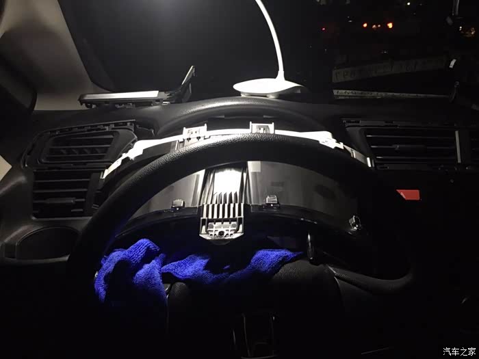 开拆,我的方法是把方向盘调到最低,然后把仪表外罩从底部拆出。