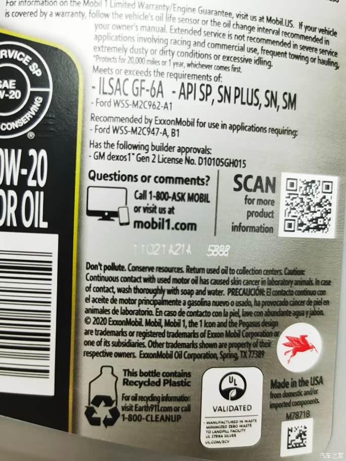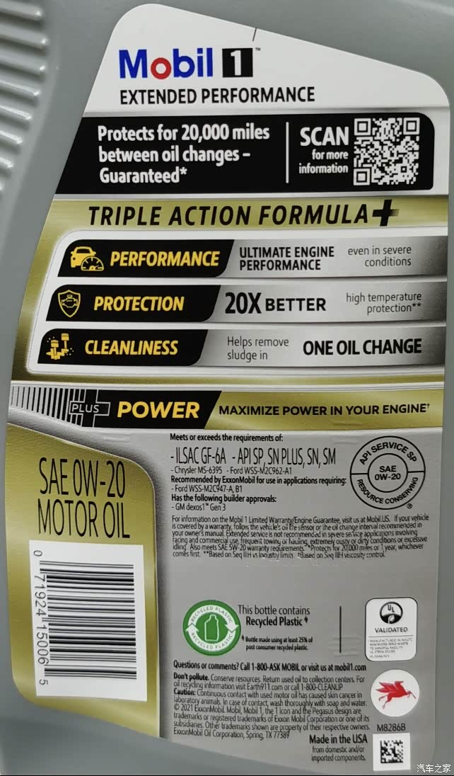 本次检测的最新版美孚EP 0W-20 SP,同样是挑战20000英里,比上一个版本多了“TRIPLE ACTION FORMULA+”大意是“三倍表现配方”还带个+😎