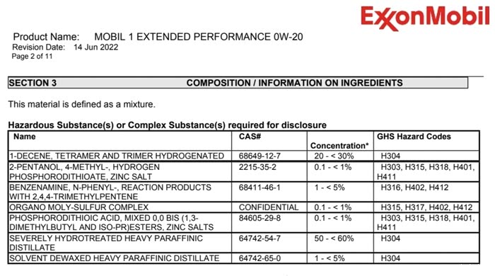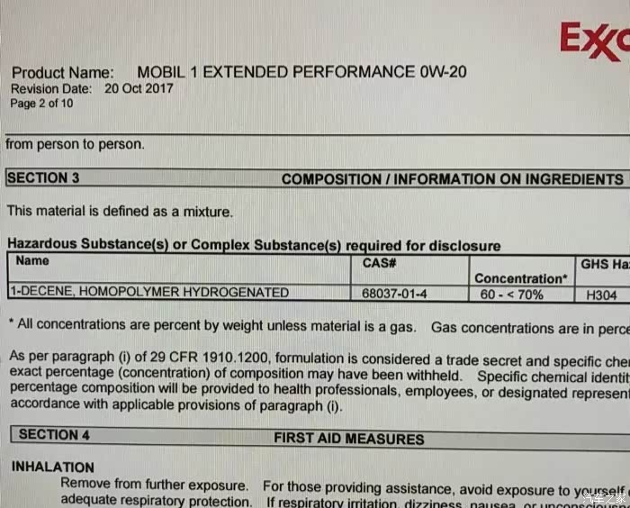 最新的MSDS显示,新EP PAO含量20-30%,其余为第三类基础油50-60%,相比最早的60-70% PAO缩水很多。也不如ESP X2美孚超金的20-30% PAO+50-60%的GTL