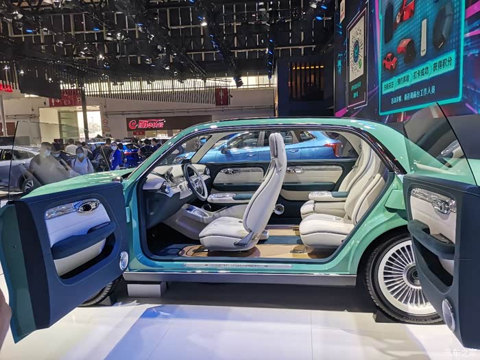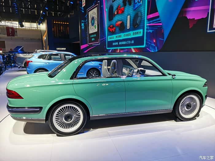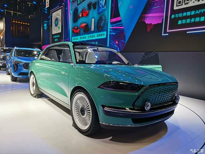 比较吸引眼球的还有这款复古车型,长城的电动车,据说是路虎过去的设计师的作品,看着有点像老上海的感觉