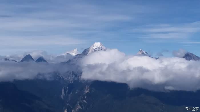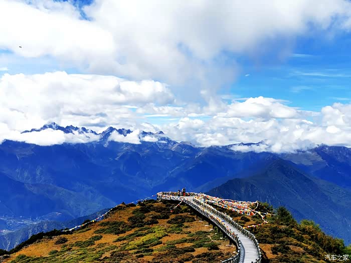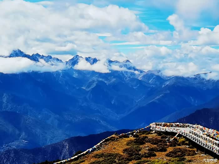 这就是玛娜茶金观景台,被中国国家地理杂志评选为最佳观景台。 ?站在海拔4300多米玛娜茶金观景台上,三怙主雪山央迈勇、夏诺多吉、仙乃日整齐的成品字型出现在你面前,仿佛触手可及。整座山脉,数十个山峰一字排开,绵延几百公里,壮观而又震撼。
