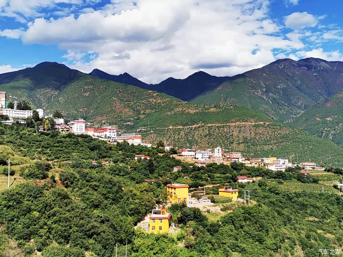 木里县临小金河畔,房屋依山而建,层层叠叠。这里是多民族聚居,房屋也风格各异。