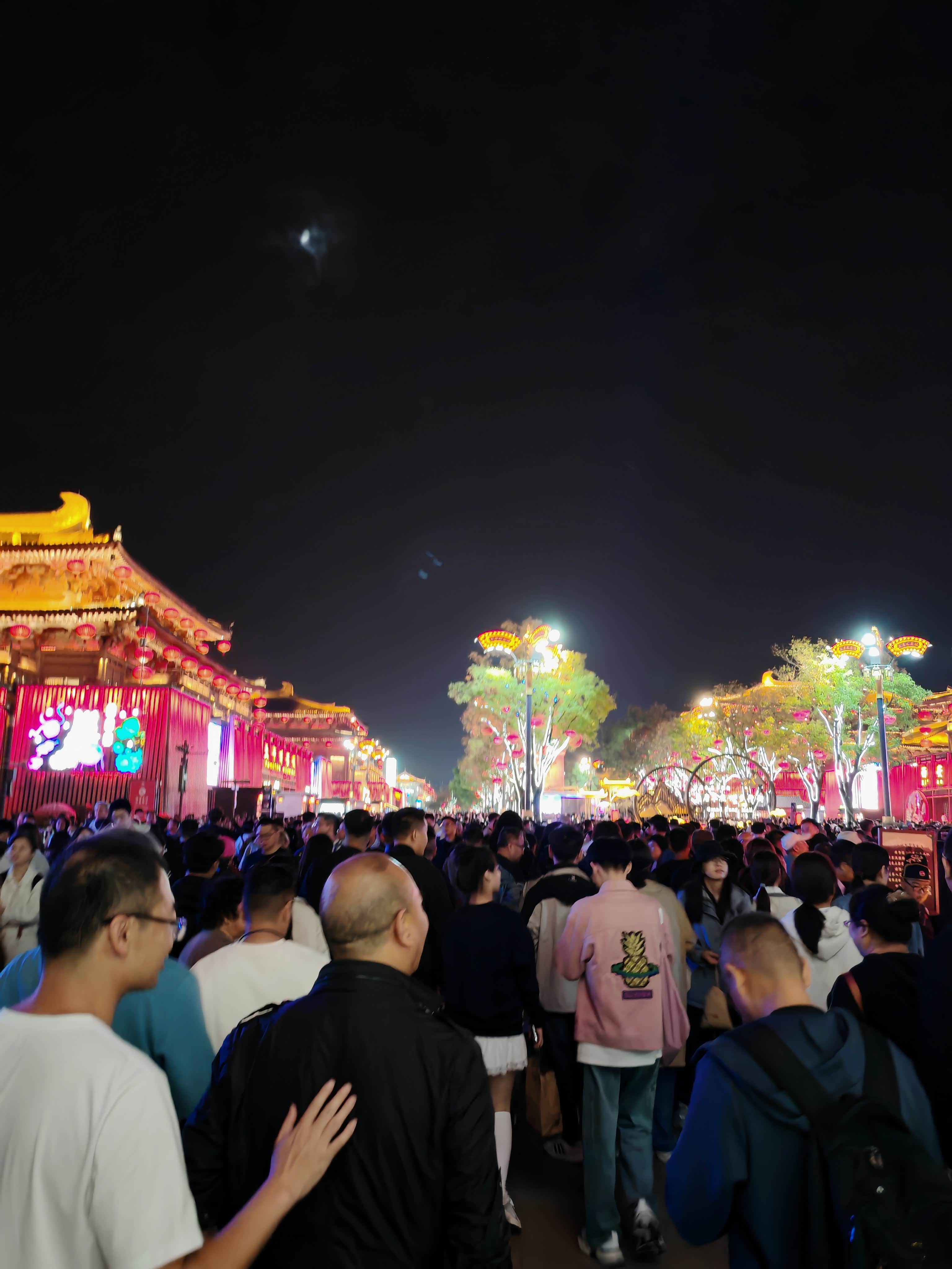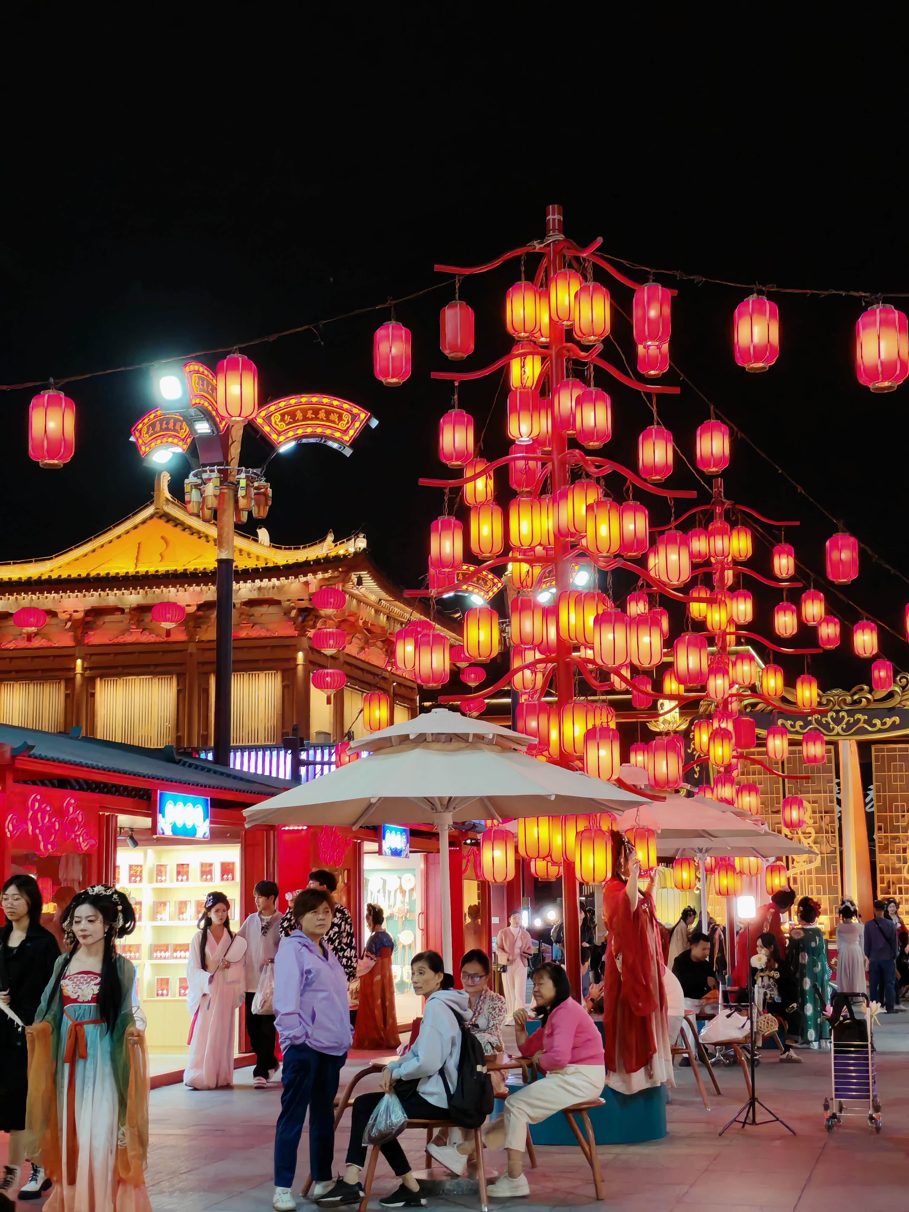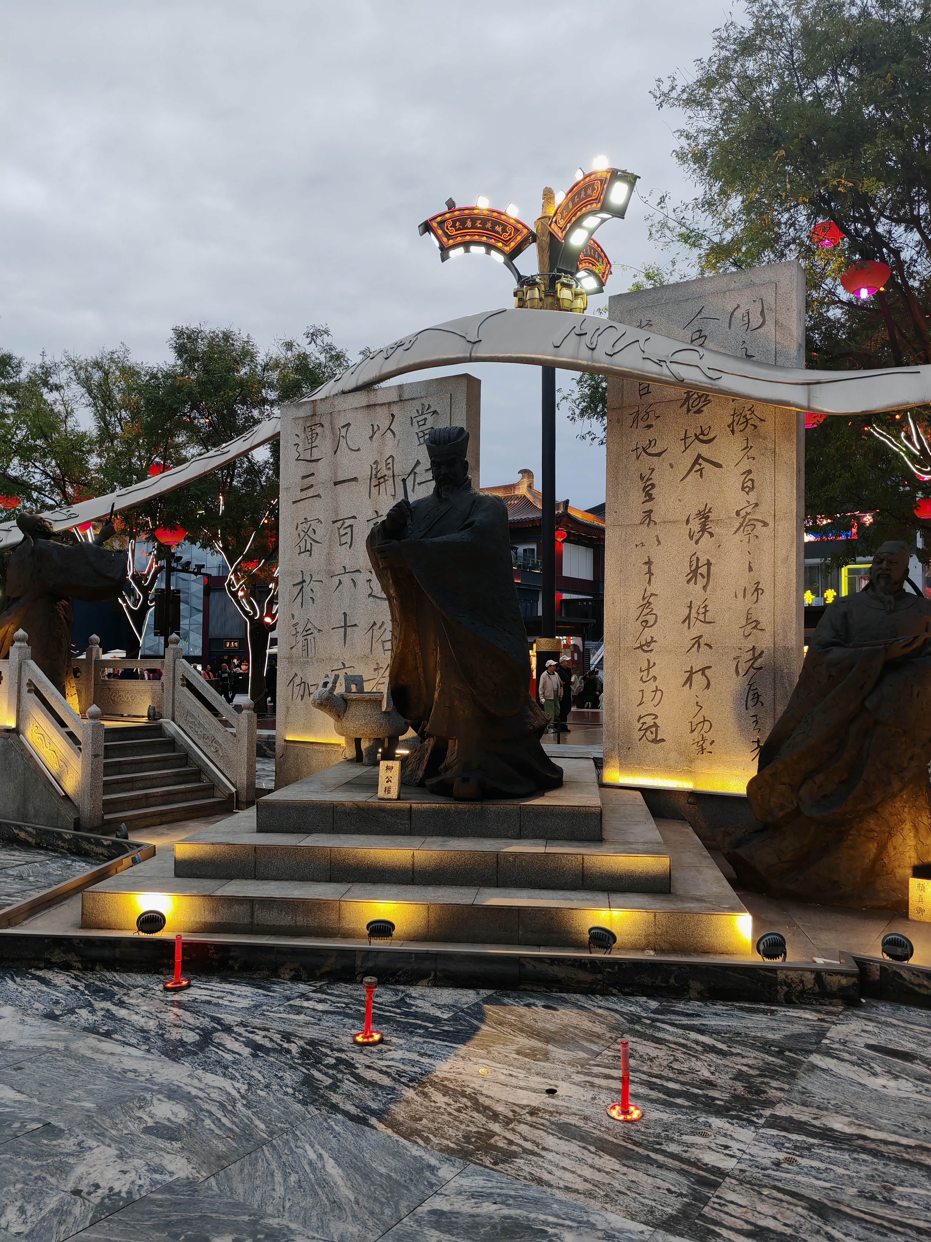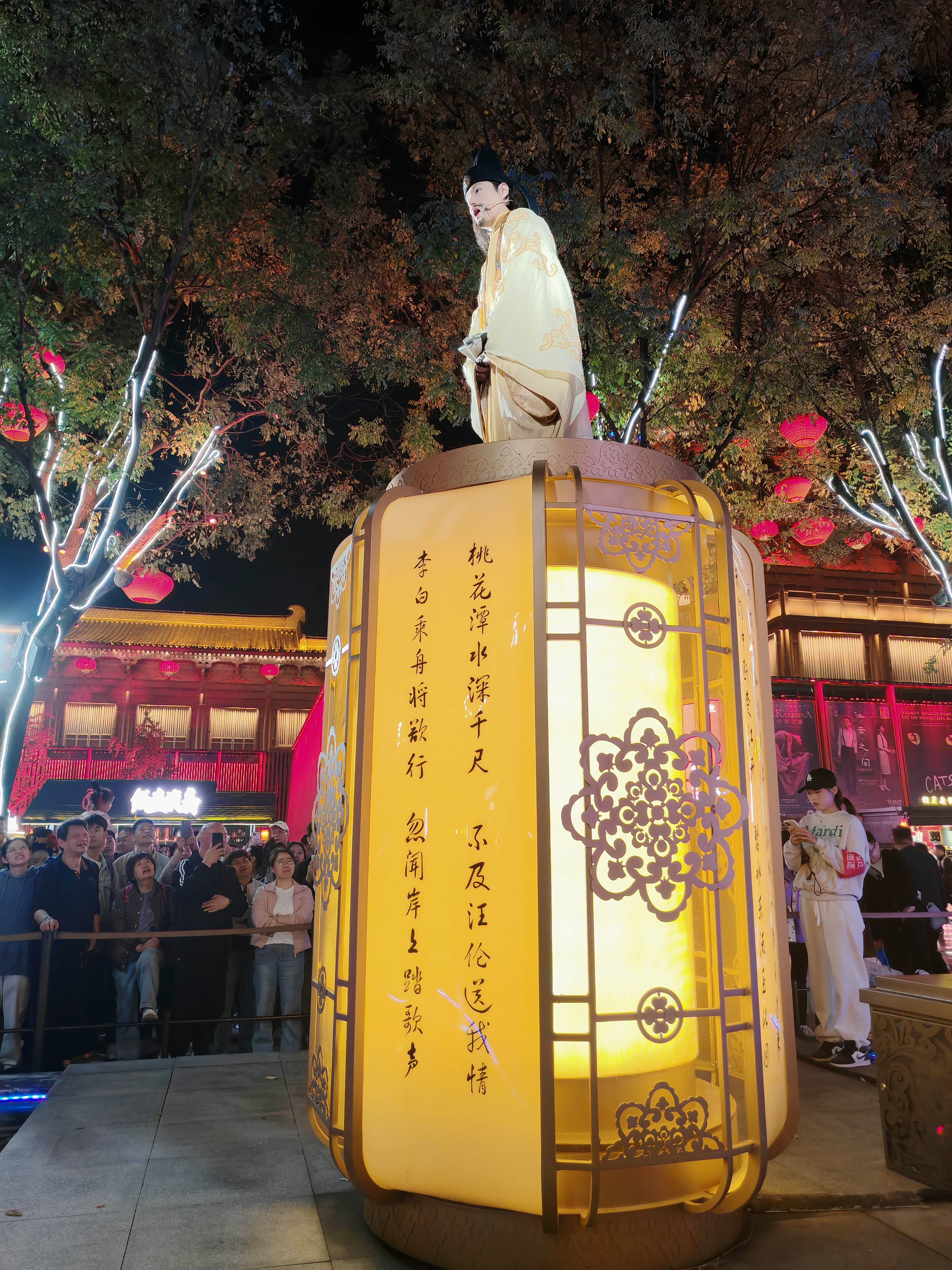 大唐不夜城其实是条露天步行街,大概有两公里长,24小时开放街区,但白天平平无奇,晚上开灯后才有大唐盛世既视感