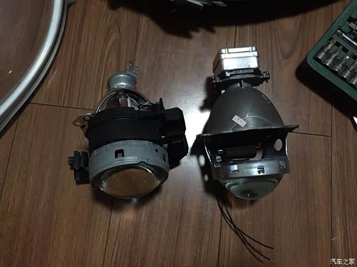 smart尽管标配近光带有透镜,但是卤素灯照路效果很一般,这台451拿到手后4个灯泡都改了国产疝气,尽管照路效果好了点,但是开启时间确实太慢了,而且安定器和灯泡质量很一般,就准备整个换了,直接上图了