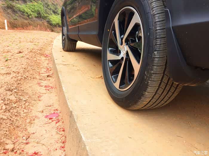 轮胎大,底盘高,通过性好,车头还比较长,坐在车里开上视野还特别好