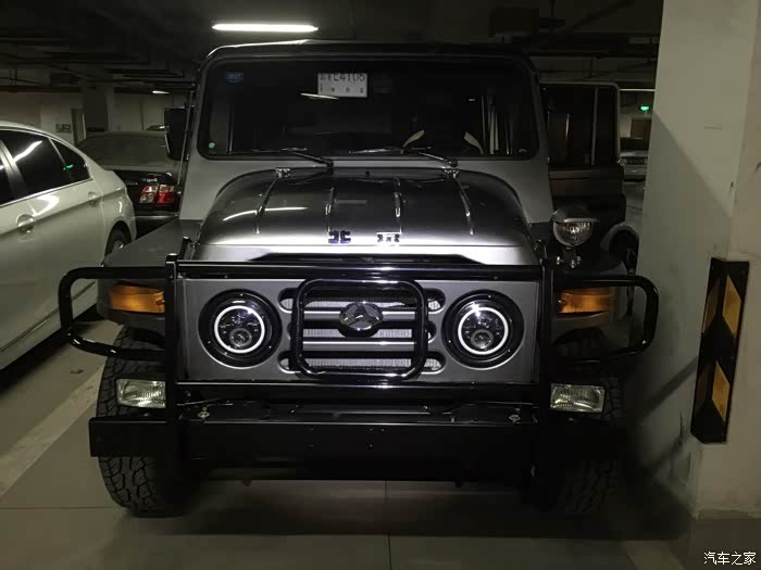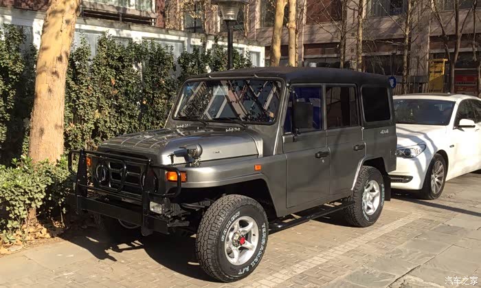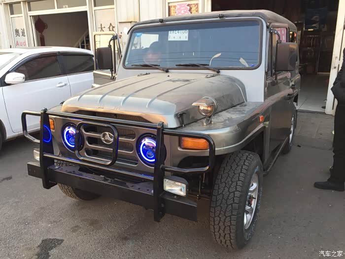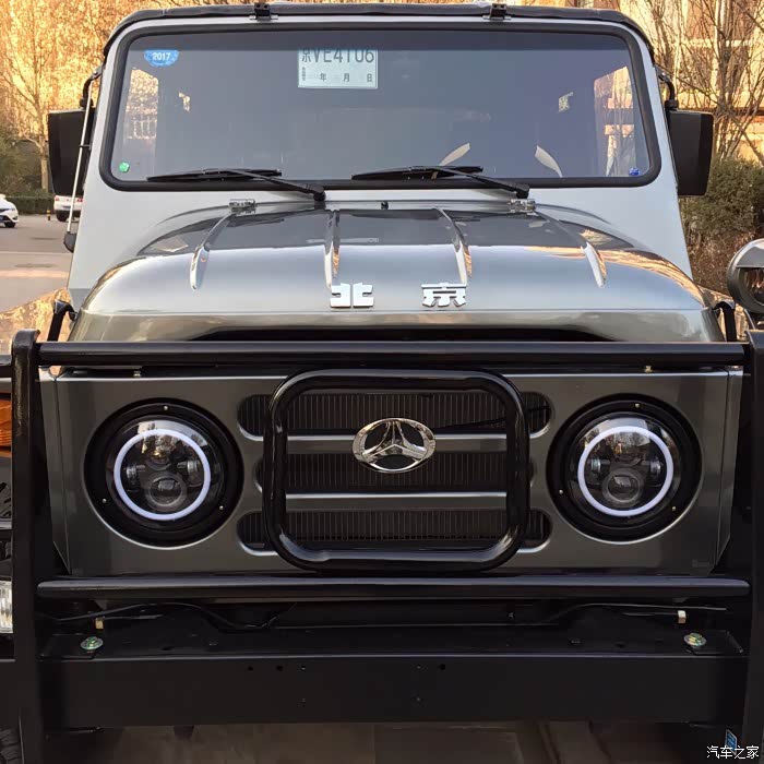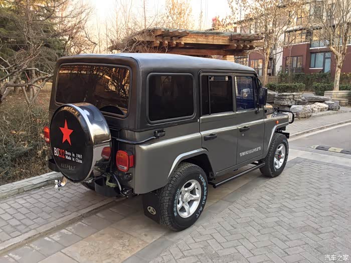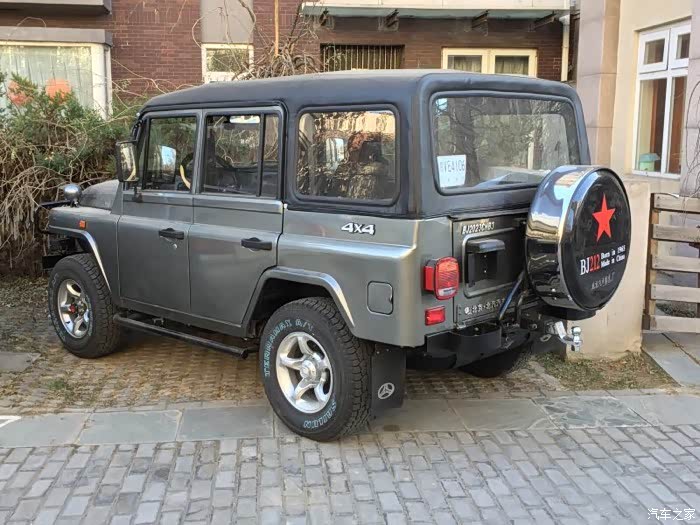 (4)拖车球和备胎壳。我喜欢拖车球,其实就是装饰。备胎壳是在某宝DIY的,本来设计了好几个,都不是很满意。这个先用着,有好的想法再改。本来打算用G63的备胎壳,把奔驰的标换成北汽的,标识换成BJ212,。无奈,微贵,这个等设计铁顶的时候再说吧。‘北京汽车制造厂’我很喜欢,也是某宝出品,贴歪了真不好意思。