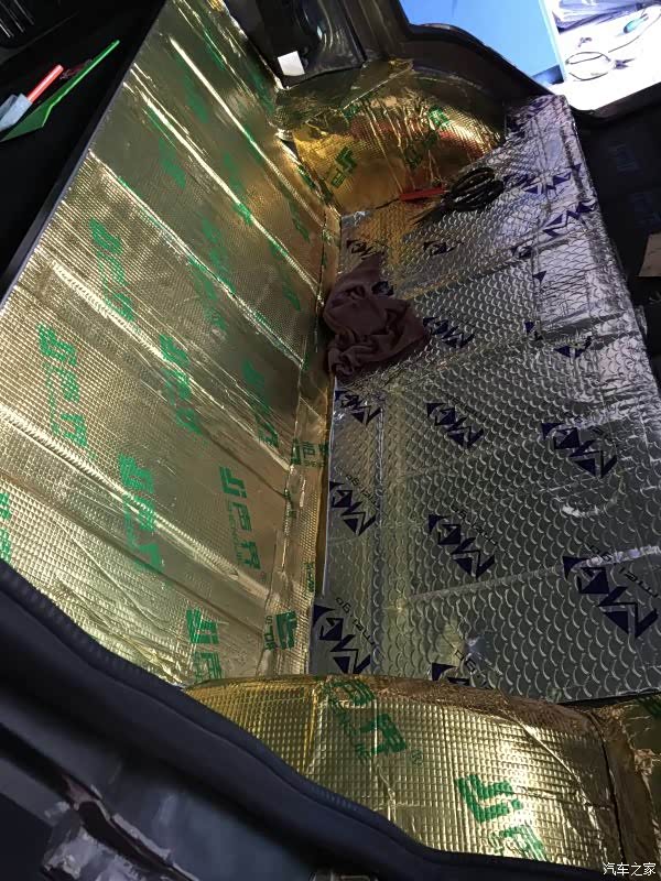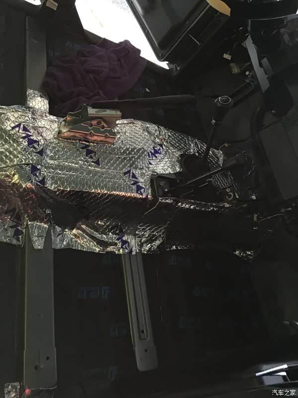 做这个的目的是为了减少来自底盘的噪音,效果挺好。现在的主要噪音来自于暖风机的后面。除了脚垫下面那个止震板之外就是铁皮了,铁皮下面就是机器,驾驶中的噪音非常之大。我想‘拖拉机’这个称号就应该是这么来的吧。