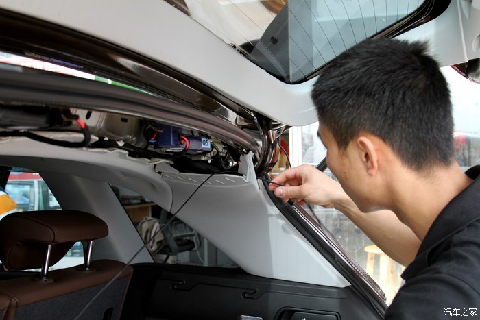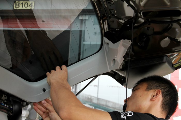 这是在拆后尾箱的开关,说倒车轨迹的摄像头就装这