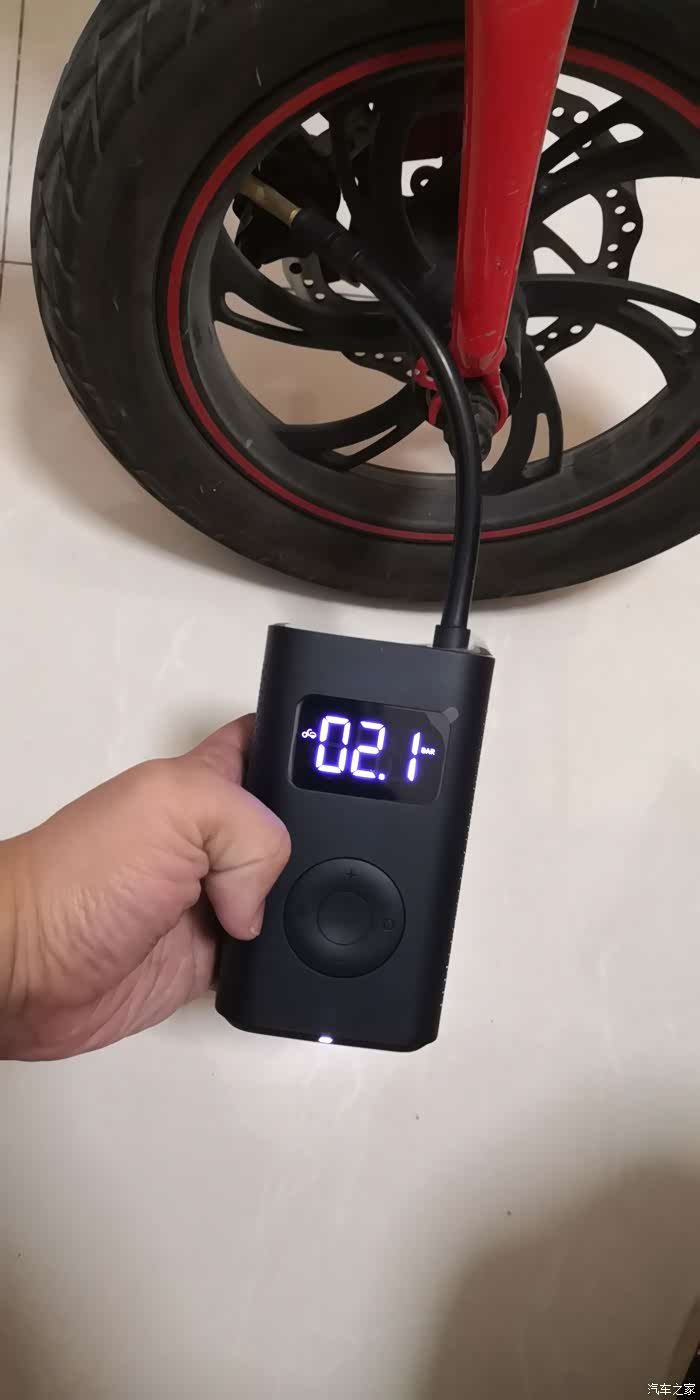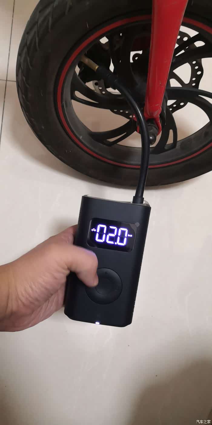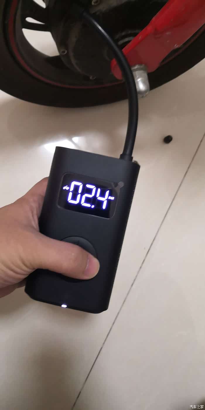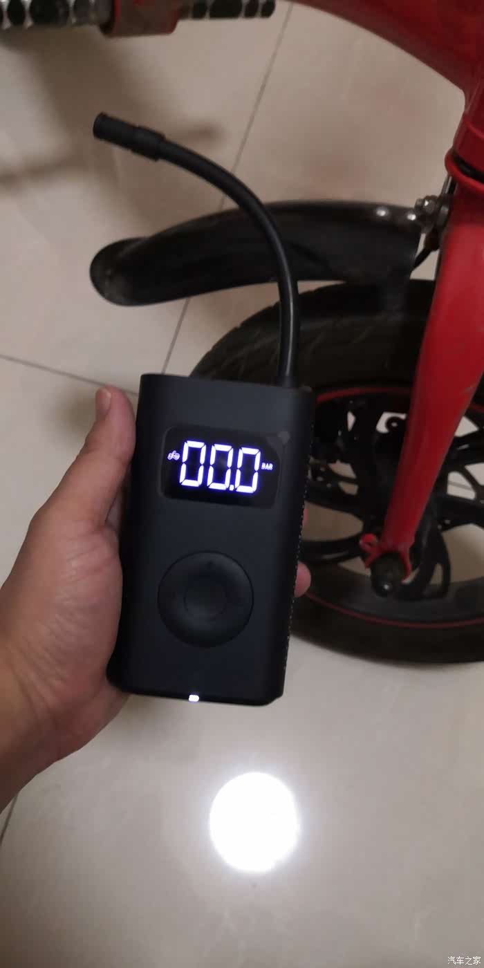 充气十分的好操作,拔下气嘴部分自动启动,数显屏幕点亮,设置好需要打入的压力,按中间按钮就开始充气,充到设置好的压力值自动停止,非常快速方便,尤其给电动车和自行车打气更是如此。
