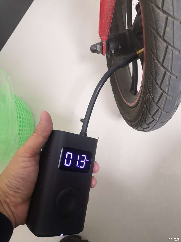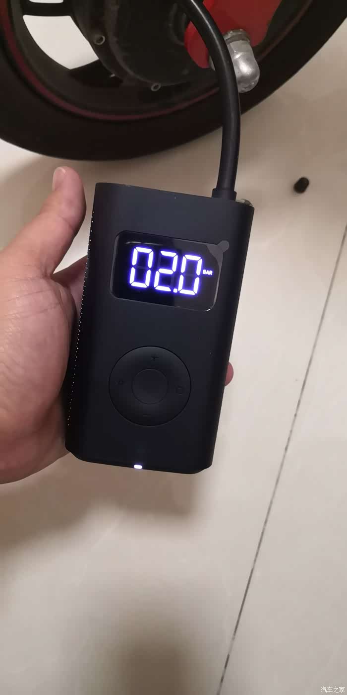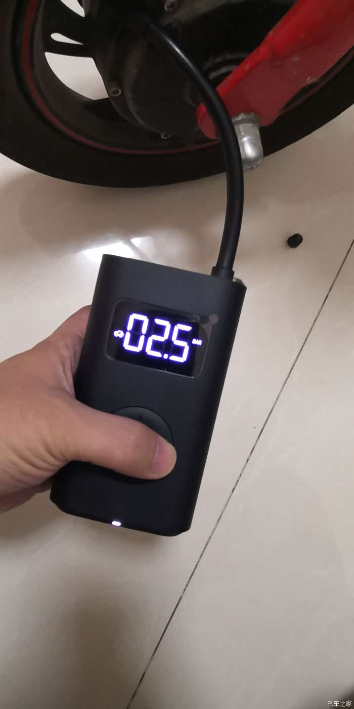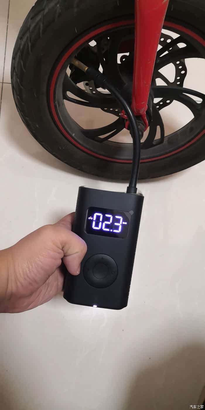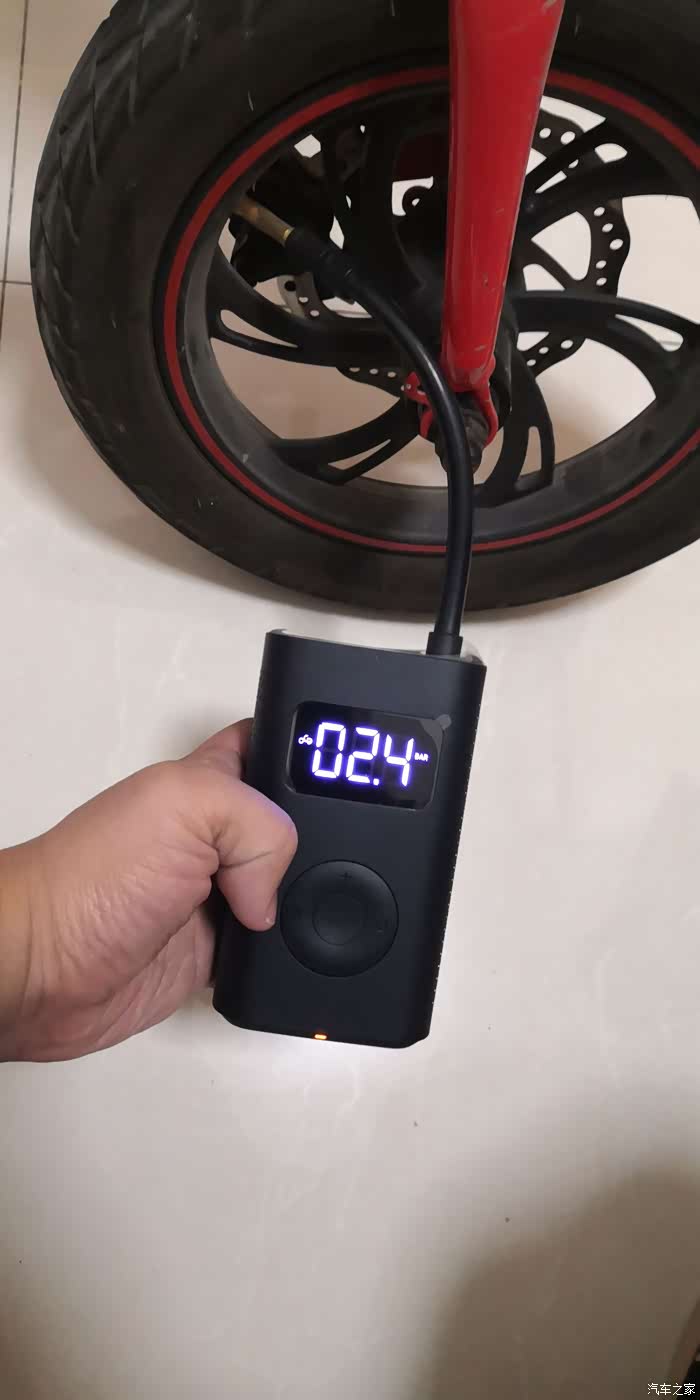 充气十分的好操作,拔下气嘴部分自动启动,数显屏幕点亮,设置好需要打入的压力,按中间按钮就开始充气,充到设置好的压力值自动停止,非常快速方便,尤其给电动车和自行车打气更是如此。