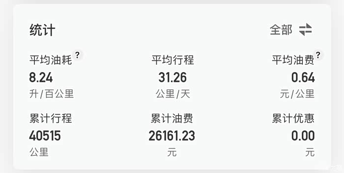 经常走市区开空调的话油耗就高一些,能去到10-11个油,不知道其他车友的怎么样啊,平均油费可到7到8毛一公里,甚至9毛一公里都有可能,当然也要考虑油价问题