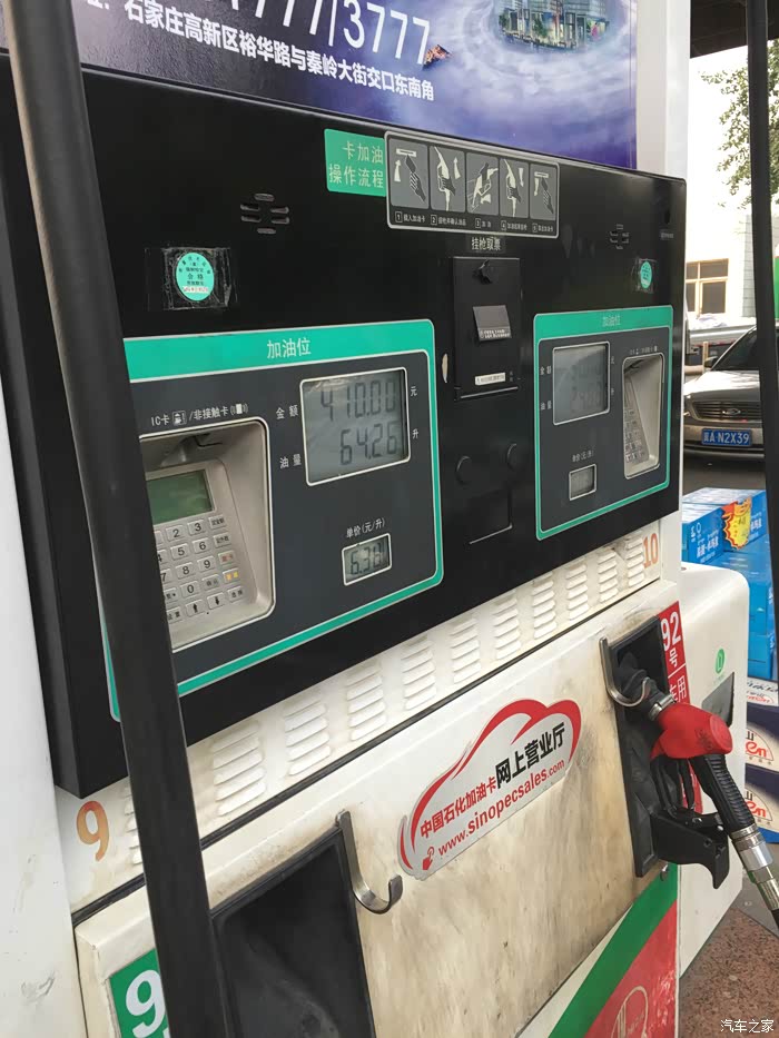 第一箱油,410元加满了。