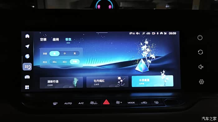 车子的三种香氛界面,里面也可以一些功能,确实比较的实用,目前车子还有一些功能我都没有使用过,后面再来慢慢研究,总得来说实用最重要。