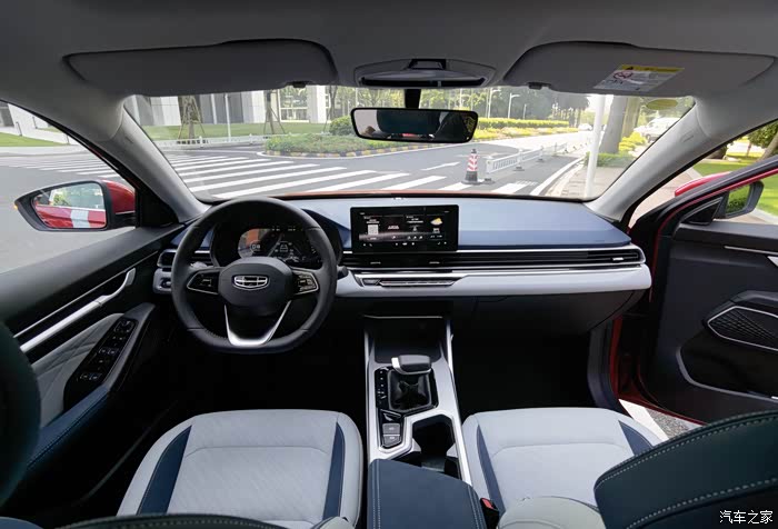 打开第四代帝豪的车门,你立马感觉到科技时代感,中控台的直线条设计成为了主导方向