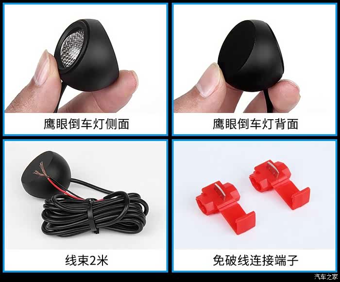 接线完成。接线时注意正负极性:鹰眼灯和原车倒车灯为红白/黑黑相接。