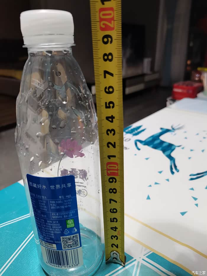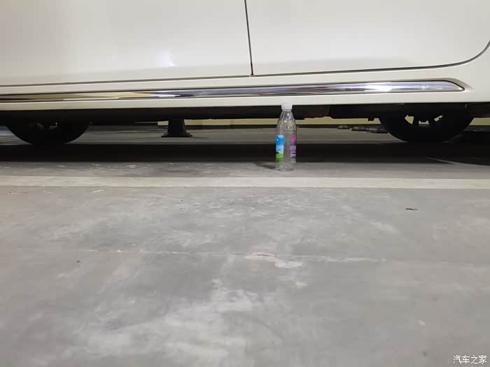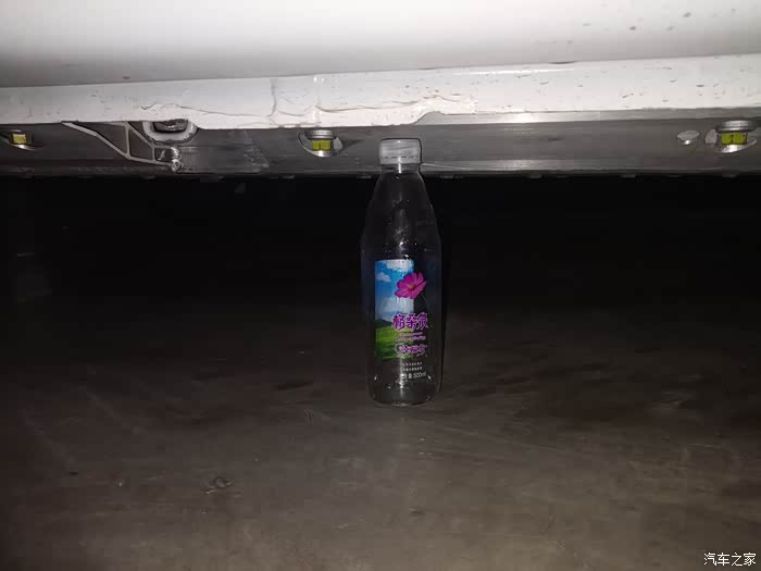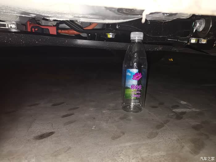 下午看到有车友发帖说奔奔底盘离地间隙低,刮了底盘,正好今天下班回来充电,顺带用瓶子当参照物测量一下。