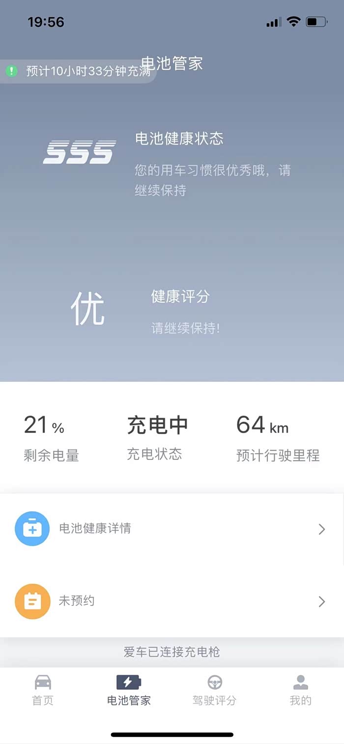 充了10多分钟用APP查了一下。