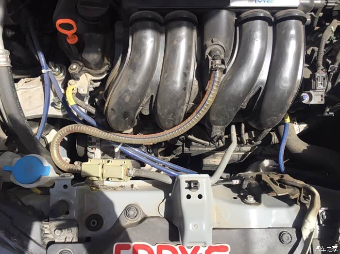 那么下面再说说机油透气壶的事吧,关于积碳一定是飞度车友最关心的,万恶的egr喷了很多黑渣子到进气岐管里,而pcv曲轴通风又喷了好多油泥进去,这下好了,直接在进气道里和泥了…