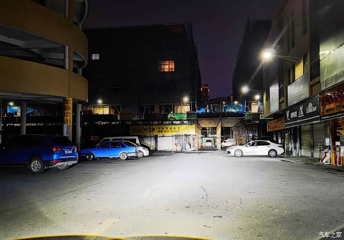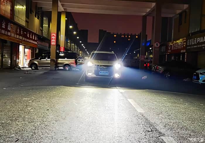 正面看铺路效果很好,原车的灯光两侧盲区很大