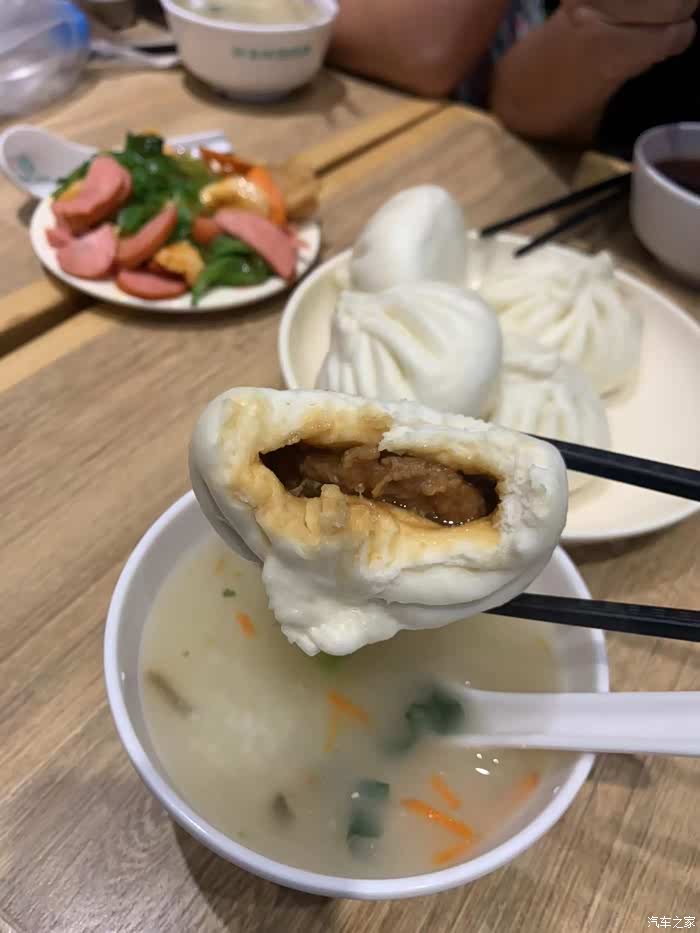 昨天晚上在环联夜市吃的比较油腻,就像吃点清淡点的,今天中午各种味道的稀粥免费尝,让我们得偿所愿,稀粥每人3元每碗无限畅吃,稀粥有皮蛋瘦肉粥,银耳莲子粥,八宝粥,小米粥,胡辣汤等,牛肉包3.5元/个,香菇猪肉包3元/个,价格还算比较适中吧。