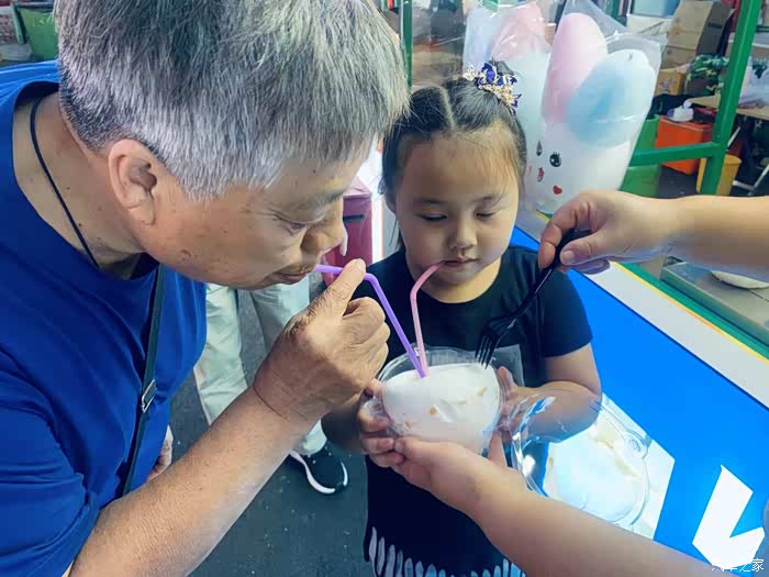 路边贩卖的糯米糕,给女儿买一个尝一尝