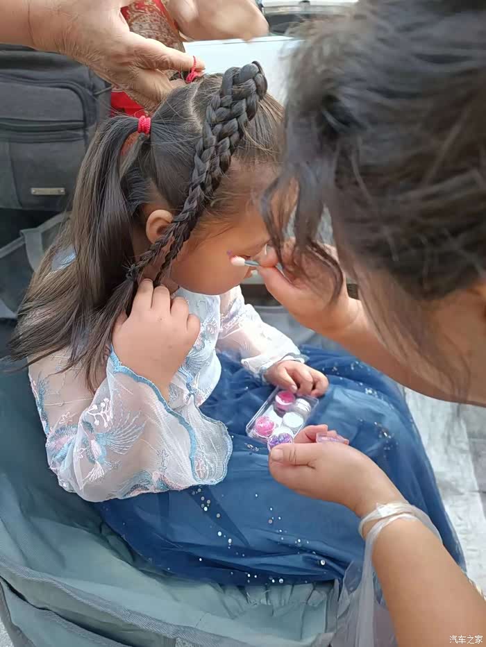 女儿扎辫子,化妆